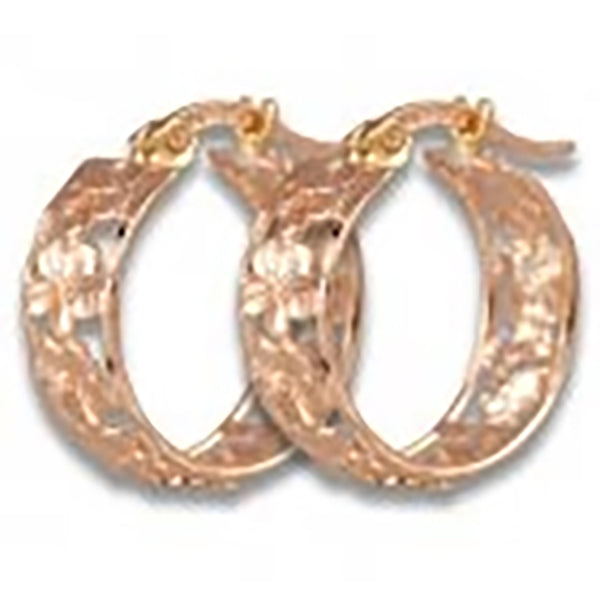 14Kのフープピアス。プルメリアが中に入ったかわいらしく、エレガントにもなる1点♪ゴージャスなのにお手頃な価格も嬉しい!