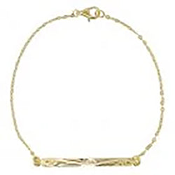 This bracelet has a thin anchor chain with a plate engraved with a wave design.